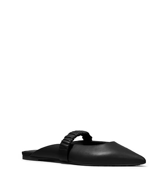 The Raleigh flats riff on the classic slides—note the backless silhouette and elastic front strap. Designed with a pointed toe from smooth leather, this modern pair will add a polished finish to everything from jeans to dresses.