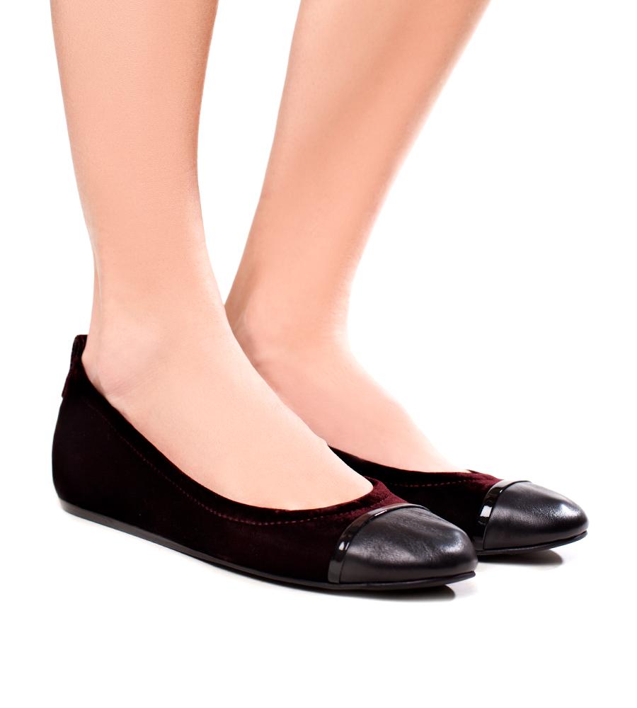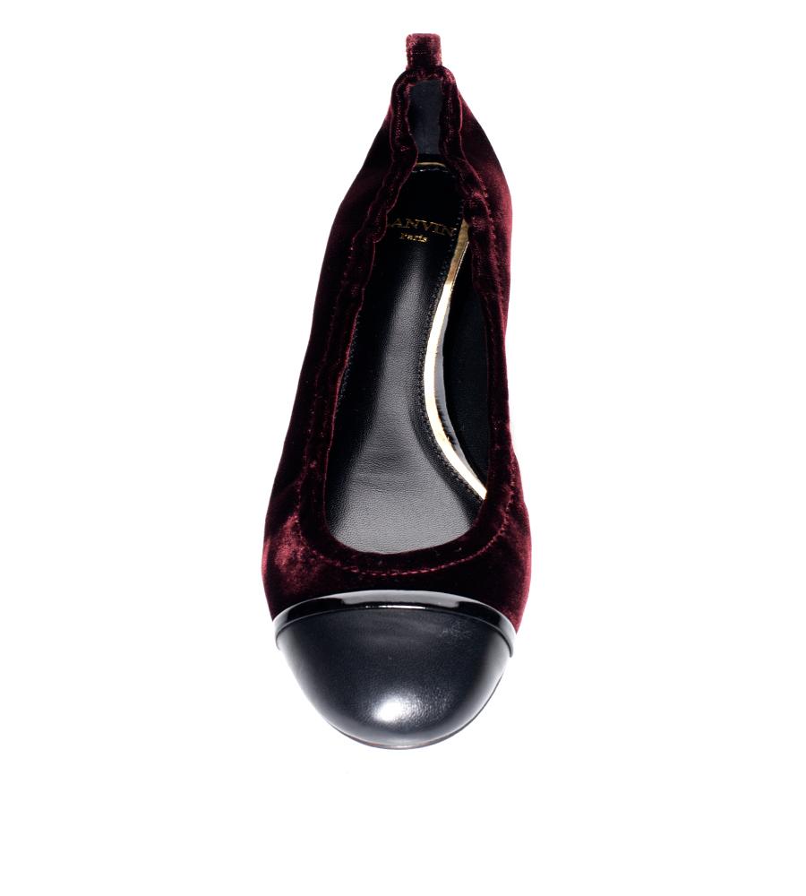 The simple and elegant flat everyone needs in their wardrobe. Featuring an elastic trim and concealed heel, these flats are perfect for everyday wear. The burgundy velvet and black leather toe-cap make them extremely versatile. Cuff your black skinnies and add a white button-down for casual chic.